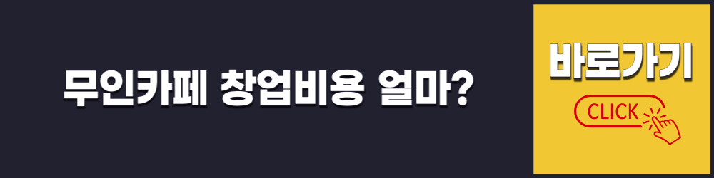👉요즘 무인카페 창업비용은 얼마일까? 지금 해도 괜찮을까? 위 바로가기로 바로 확인해보세요.